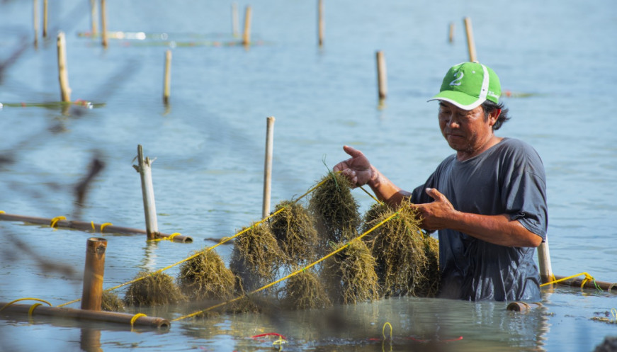 Kementerian Kelautan dan Perikanan (KKP) berkomitmen dukung pembangunan berbasis ekonomi biru (blue economy). Komitmen ini ditunjukkan melalui pemanfaatan rumput laut sebagai penggerak pembangunan nasional maupun global yang ramah lingkungan dan berk
