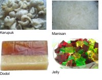 Tepung rumput laut ini juga bisa dibuat untuk puding dan dodol rumput laut cara masaknya hampir sama dengan jely hanya saja disesuaikan konsentrasi dan lama pemasakannya.