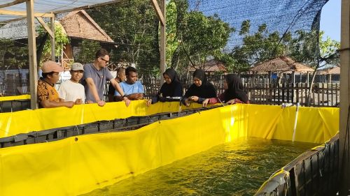 | Peserta Melihat Budidaya Gracilaria di Samping Laboratorium Kultur Jaringan |